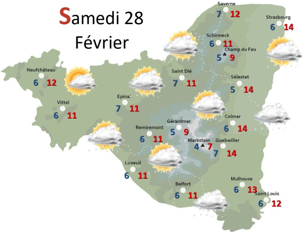 Le mercure de part la présence d’un ciel couvert sera plus frais, bien que toujours supérieur aux normales de saison, souvent compris entre 11 et 13 degrés en plaine l’après-midi.