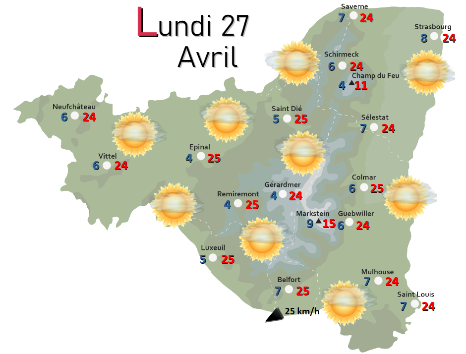 Les conditions, toujours aussi lumineuses et ensoleillées, se poursuivront pour demain. Le vent devenant toujours de plus en plus faible, le mercure sera encore en hausse de un ou deux degrés. Nous nous rapprocherons dès lors un peu plus de conditions dignes d’une seconde décade de mai.